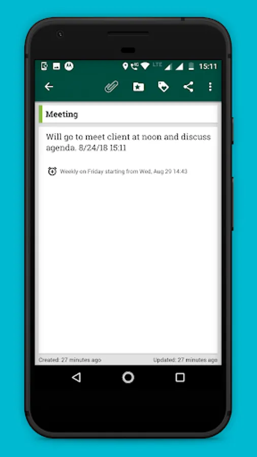 You can attach your Image,Video,Files,Voice,Sketch,Location,Time Stamp in your note.