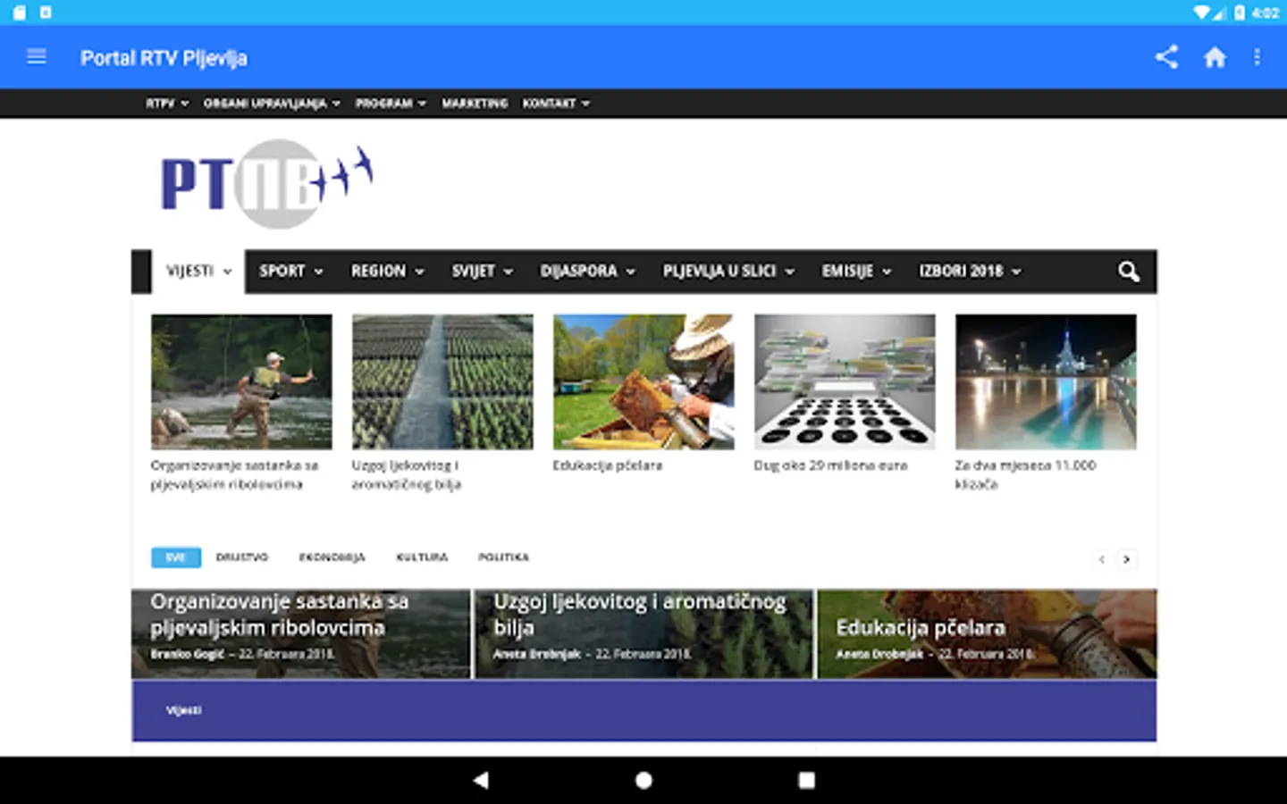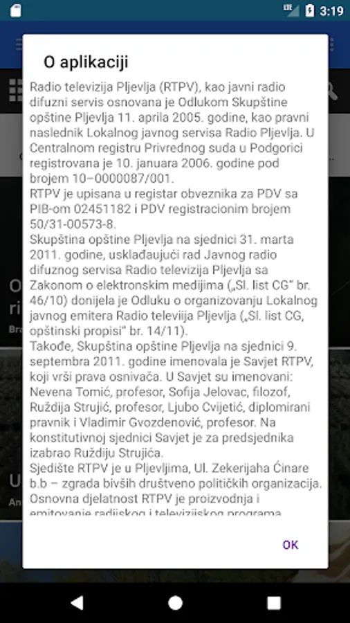 Radio Television of Pljevlja (RTPV), as a public broadcasting service established by the Decision of the Municipality of Pljevlja on 11 April 2005, as the legal successor of the Local Public Service Radio Pljevlja.