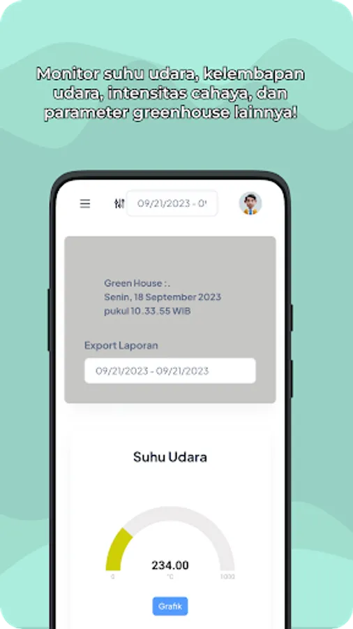 • Pantau suhu udara, kelembaban udara, kelembaban tanah, dan intensitas cahaya di rumah kaca Anda.