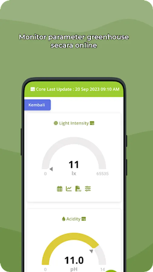 ‣ Monitor the light intensity, pH, TDS value, nutrient temperature, soil moisture, air humidity, air temperature and water level in your sweet melon greenhouse.