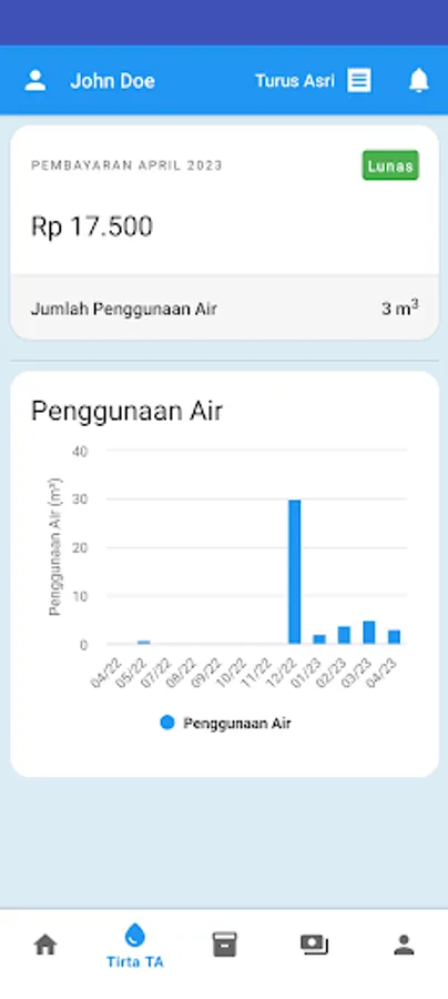 The TurusAsri application is one of the applications developed by the OmahIoT team. This application was made to facilitate the process of paying for water and cash for RT 07 RW 03, Bulusan Village, Tembalang District, Semarang City.