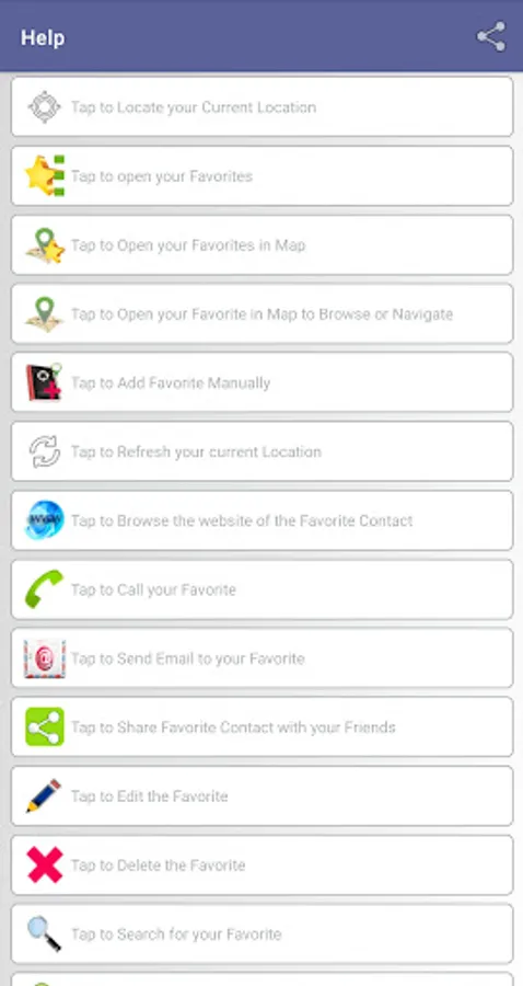 – Option of adding saved favorite address as a contact in Phone’s Contacts App. (Phone Book)