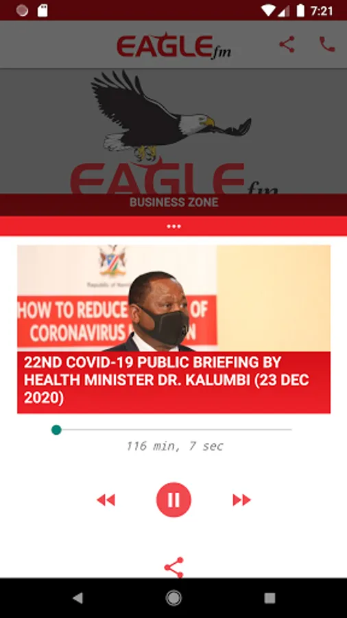 Eagle FM is a commercial radio station from Namibia. It's programming content aims to encourage discussions to find solution to some problems facing the nation.