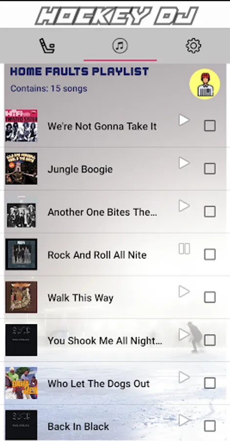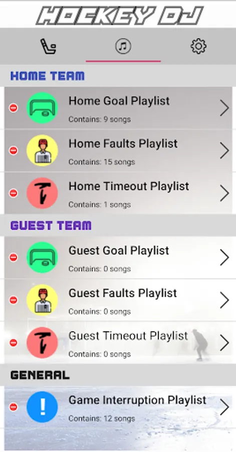 Since it uses spotify, you can select the type of songs that fit to a local goal, a visitor's goal, faults or other interruptions. Hockey DJ will play one of the songs in the specified playlist randomly. It will try not to repeat that song until all songs in the playlist are played.