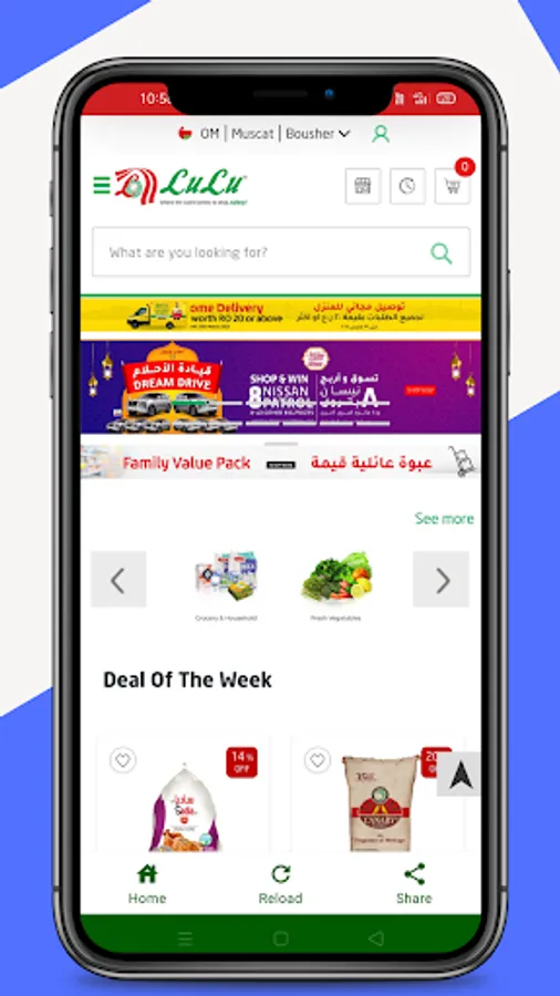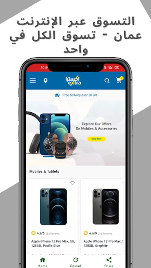 تطبيق التسوق عبر الإنترنت في عمان يساعدك على اكتشاف المتاجر والمنتجات وأفضل العروض الجديدة من جميع أنحاء مسقط وسيب وصلالة وبوشر وصحار والسويق وعبري وصحم وبركاء والرستا وجميع أنحاء العالم خليج عمان.