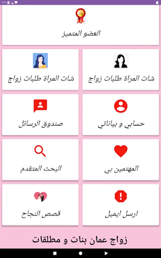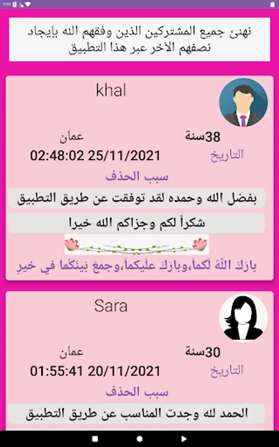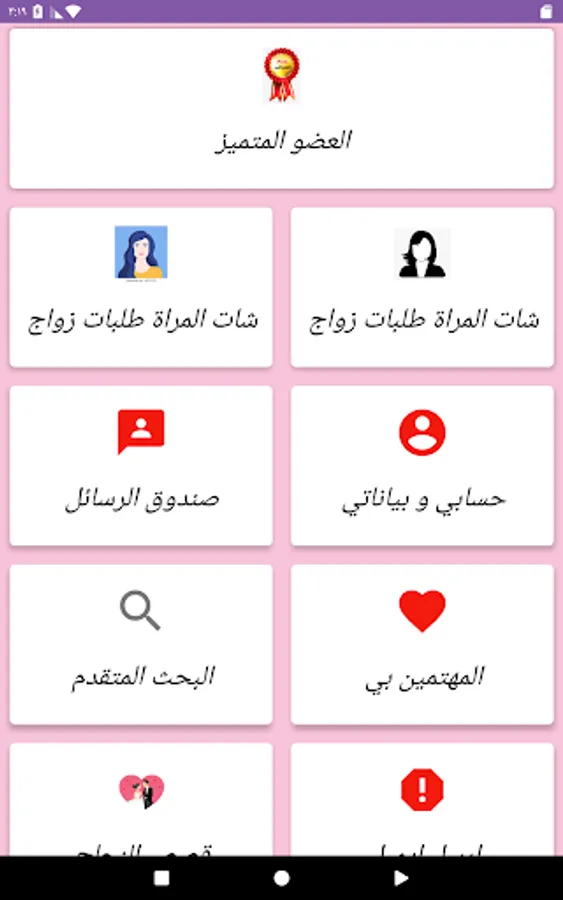 One of the important features of the application is that it includes all categories and layers of Arab societies and all jobs, which constitutes a greater field for every girl to find what she is looking for from a husband that suits her socially and corresponds to her dreams