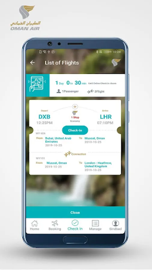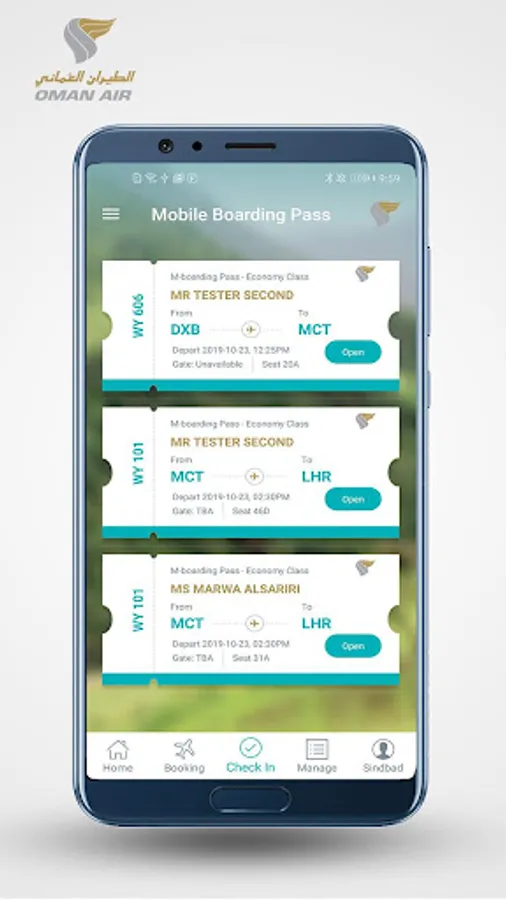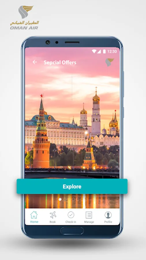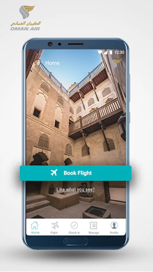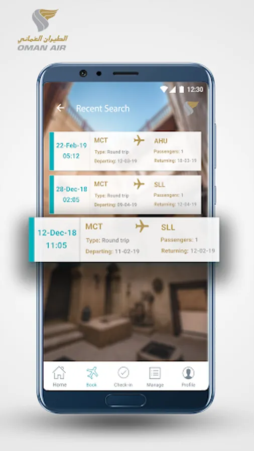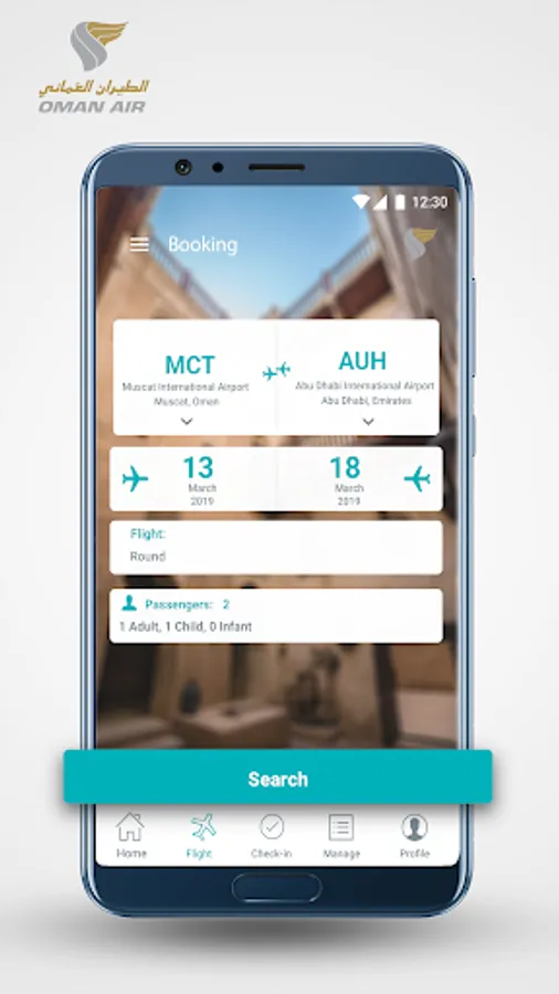 With a touch, you can book your next flight with Oman Air or partner airlines.