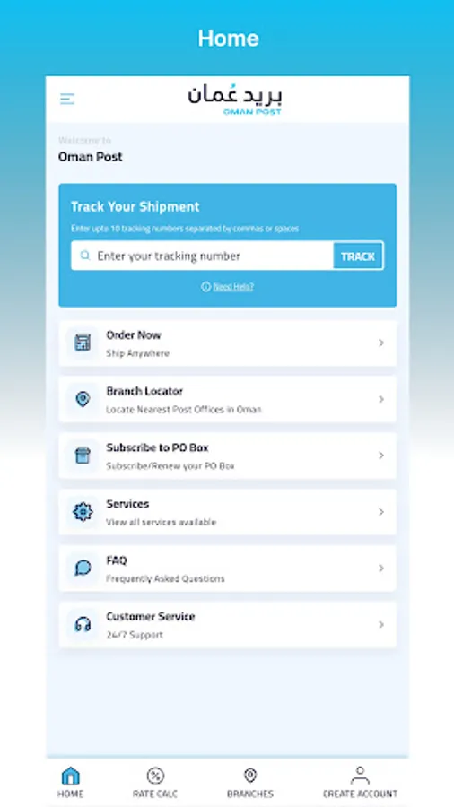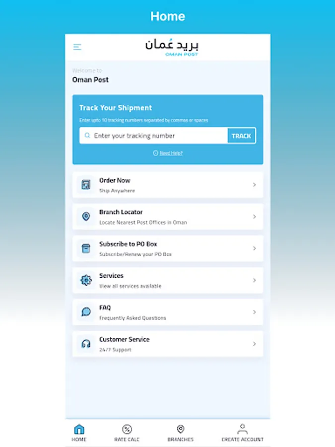 Register and renew your PO Box in a few steps online with the integrated online payment process. Get live updates on the status of your courier in just a few clicks. Know the nearest branch in the area you live in. Oman Post also calculates the amount payable depending upon its weight, type of courier and the place to be sent.