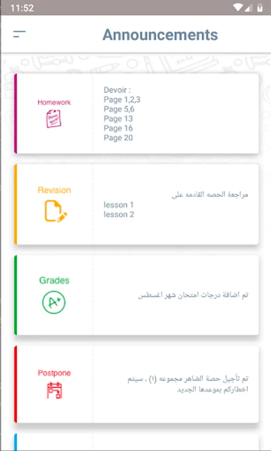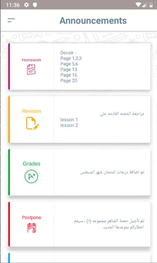 Using 3assal you can scan QR code to facilitate the session's entrance, view your quiz and monthly exams grades. also you will get important announcements from Monsieur Hani.