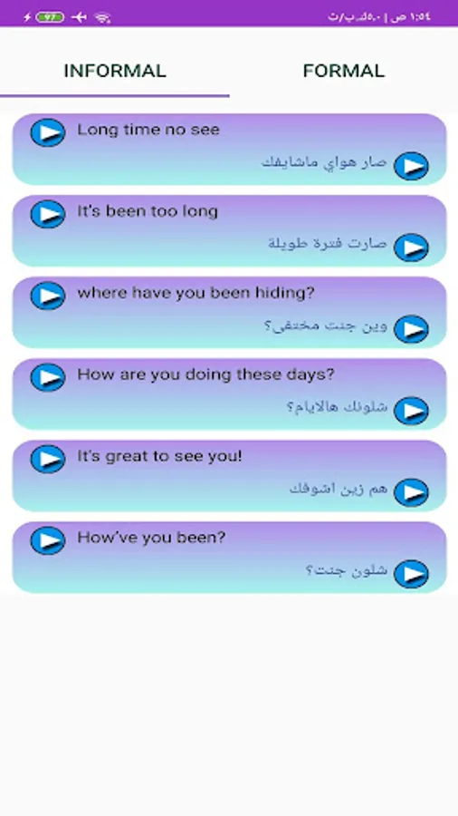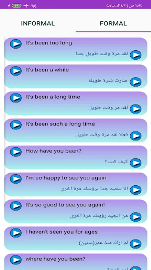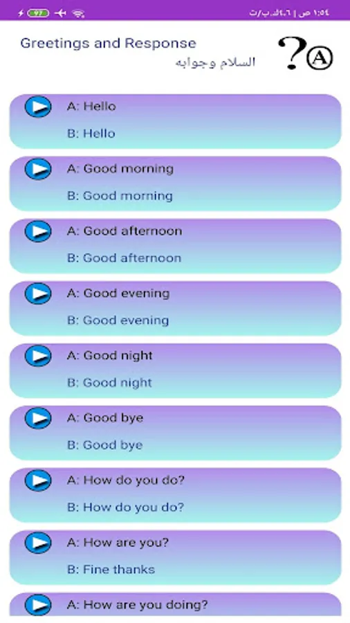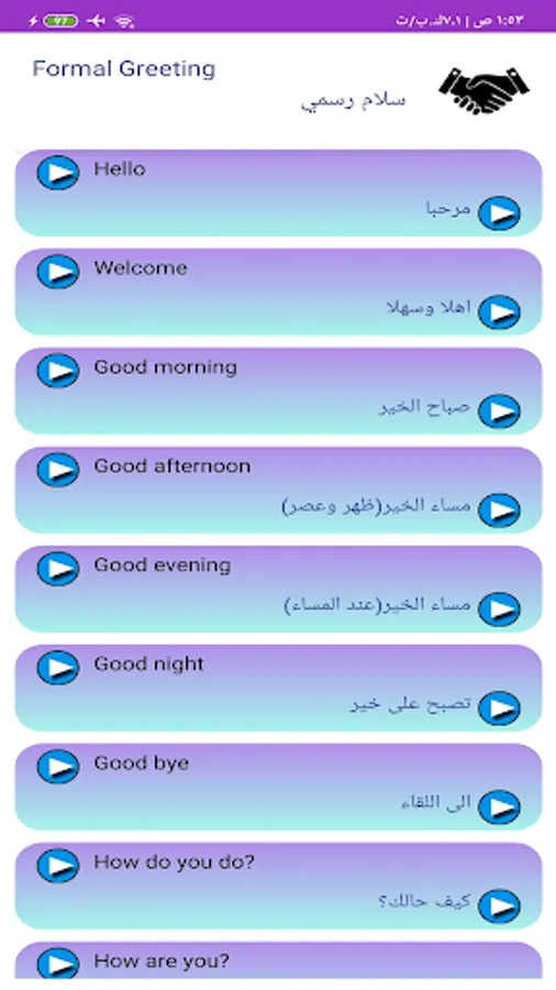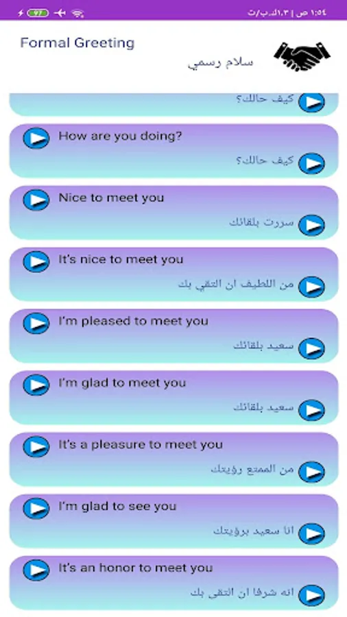 * يحتوي على تعابير شائعة مستخدم عند أداء السلام في كلا اللغتين العربية والإنجليزية ، يحتوي على تعابير رسمية وغير رسمية