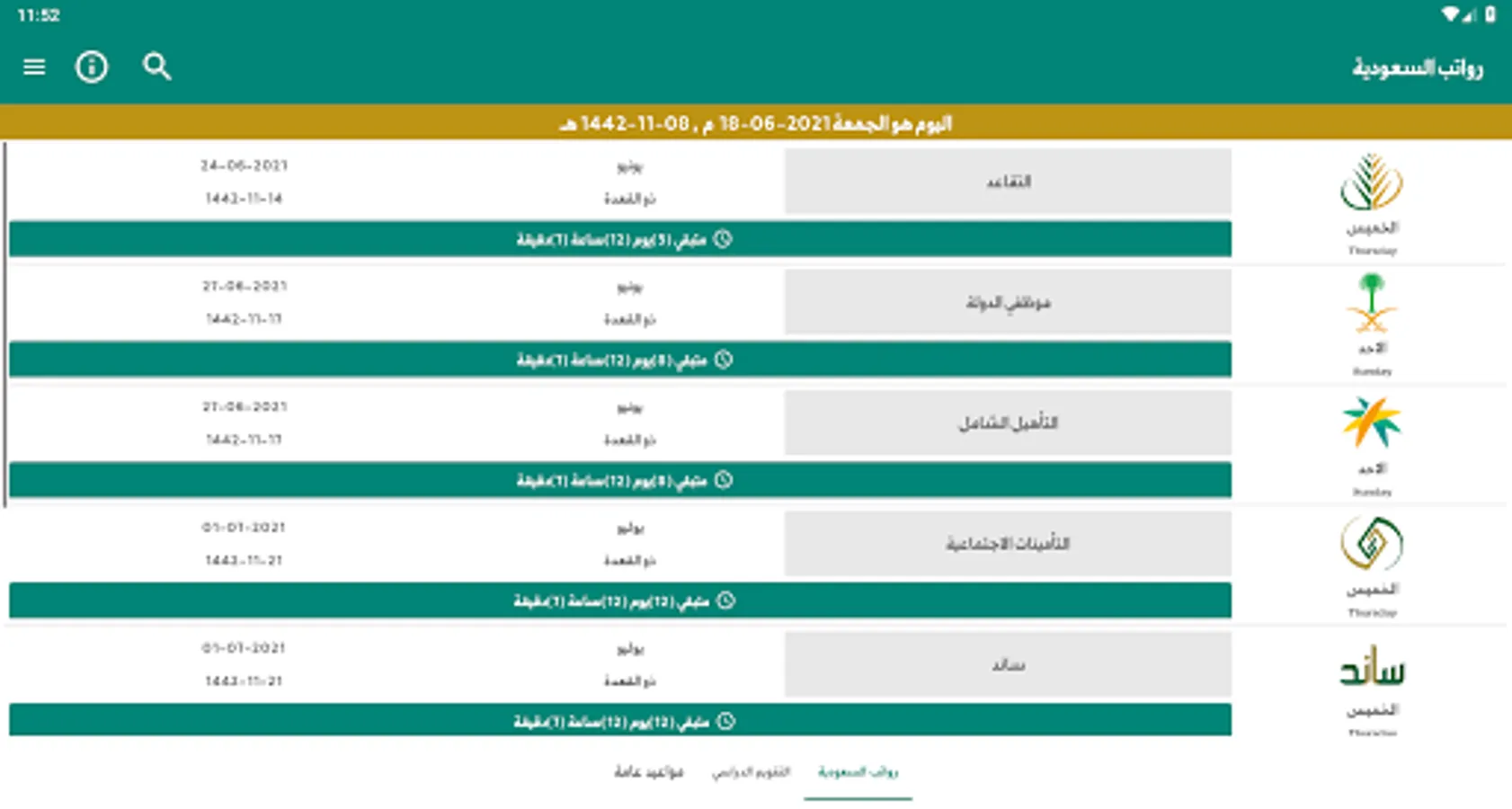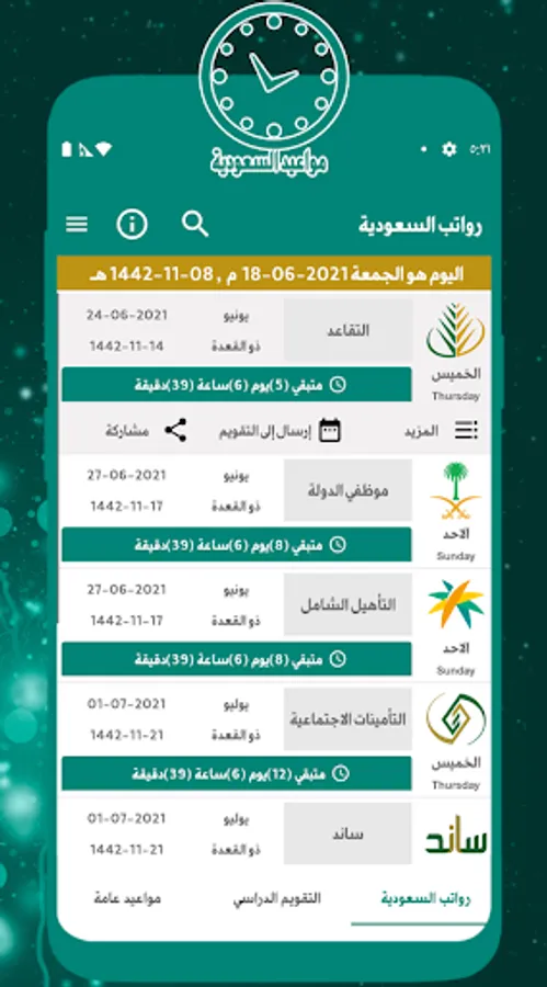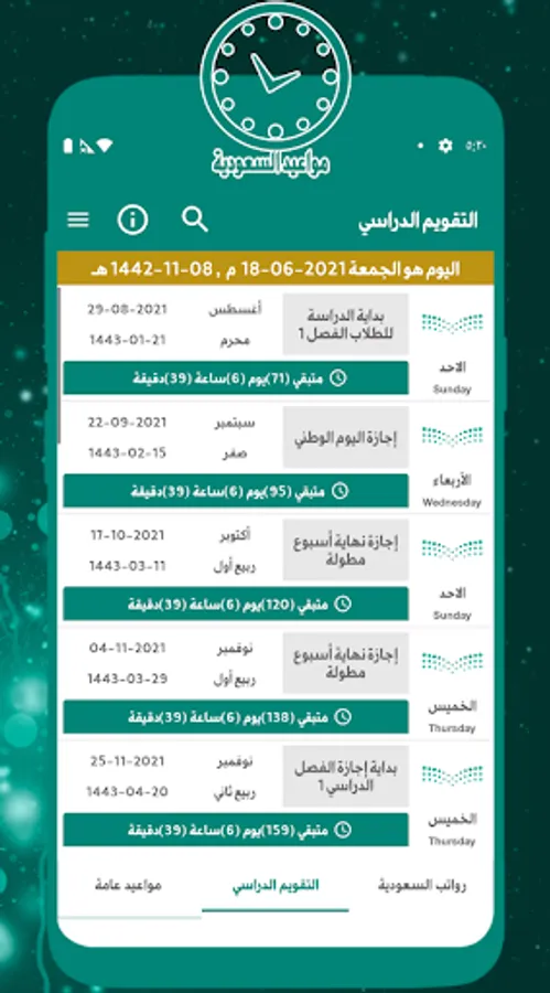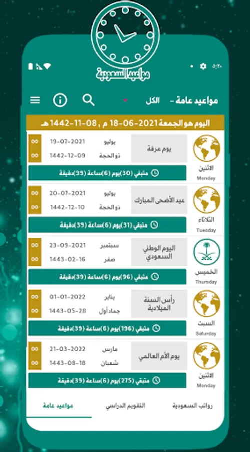 • The application is based on the Gregorian date and also contains the Hijri date based on the Umm Al-Qura calendar.