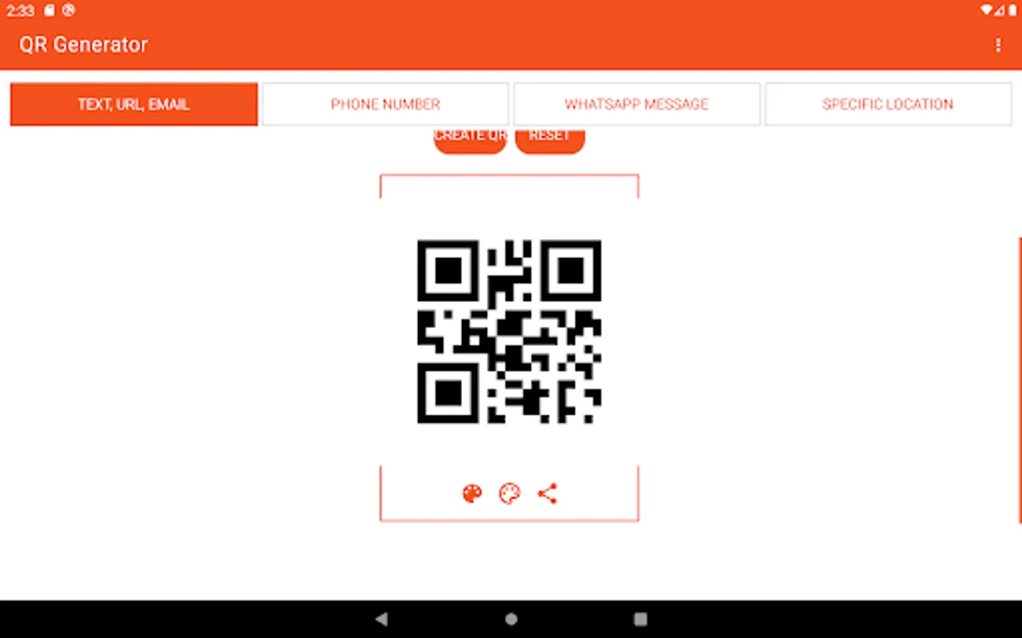 The QR Creator application is for creating the QR in a quick and simple way that does not require much effort, such as phone numbers, texts, websites, and others.
