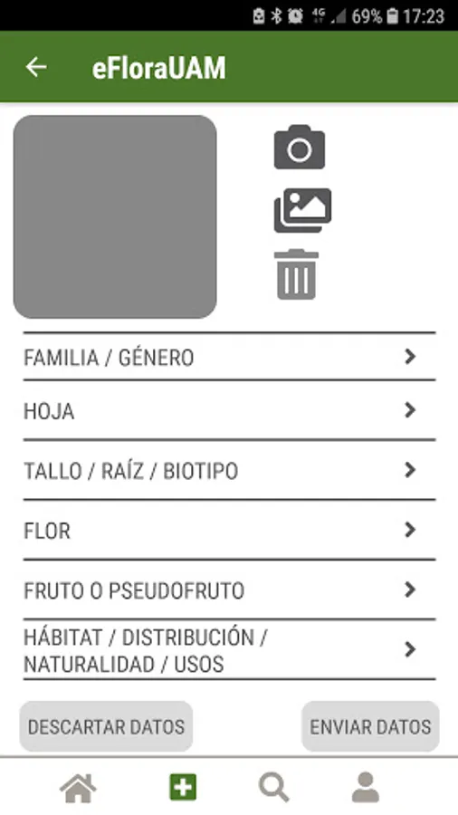 The application is part of the citizen science project Participatory virtual flora of the UAM and surroundings (C_019.20_INN). Its objective is to create a collaborative virtual floristic catalog of the Cantoblanco campus environment (UAM) based on photographs of the users that allows them to become familiar with botanical concepts and characters relevant to the identification of species. Any user will be able to see the photographs and labels of the rest of the users, while registered users will be able to upload their own photographs and labels. A team of botanists will supervise the identifications and labels and correct those that are necessary.