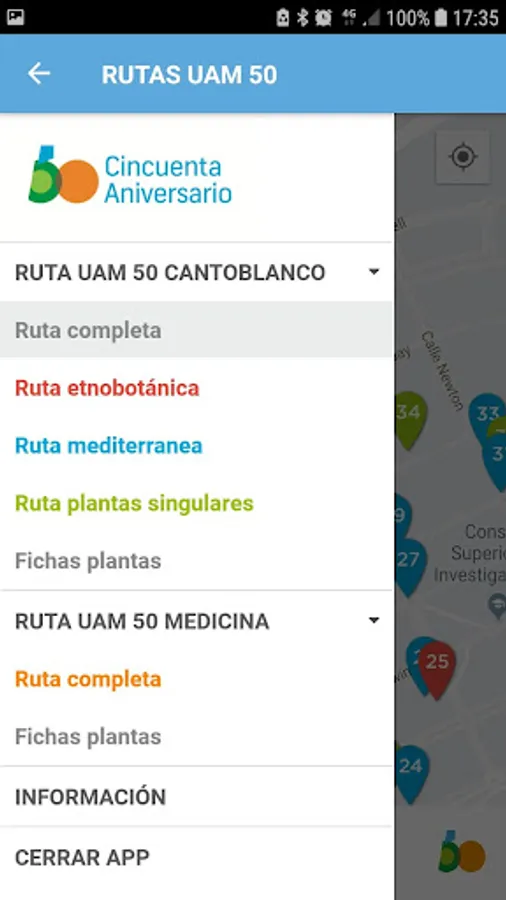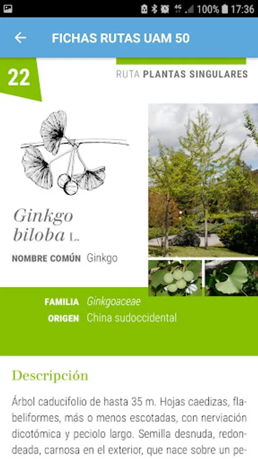 The application offers three botanical tours on the campus of Cantoblanco and one in Medicine. Detailed information can be obtained and the position of ethnobotanical interest species, rare plants of the Autonomous University of Madrid and species of the Mediterranean environment.