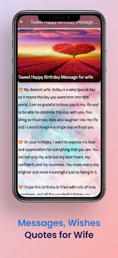 The application contains attractive birthday wishes to wife. If you want to wish your loved ones a Happy Birthday and you don't have time for that, the app gives you the wishes you want to send to whomever you want. Using this app, you can find the right words to express your joy on your special family days can sometimes be difficult, especially with regards to your wife's birthday wishes.