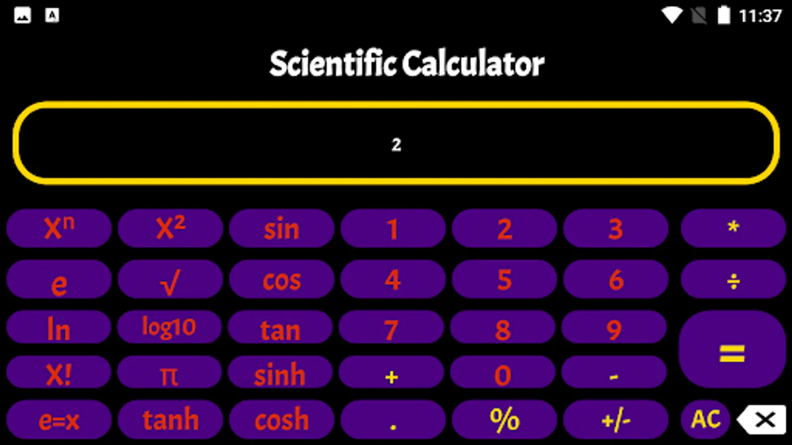 Calculator app which consists simple math Operation in addition to scientific mathematical operation in landscape view