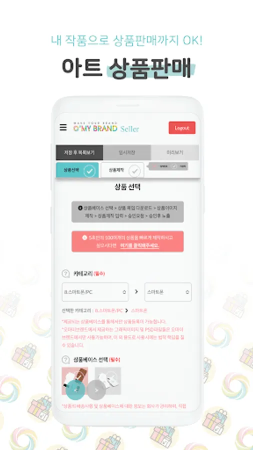 Through the OMYBRAND seller app, you can manage your design work at a glance and work easily.