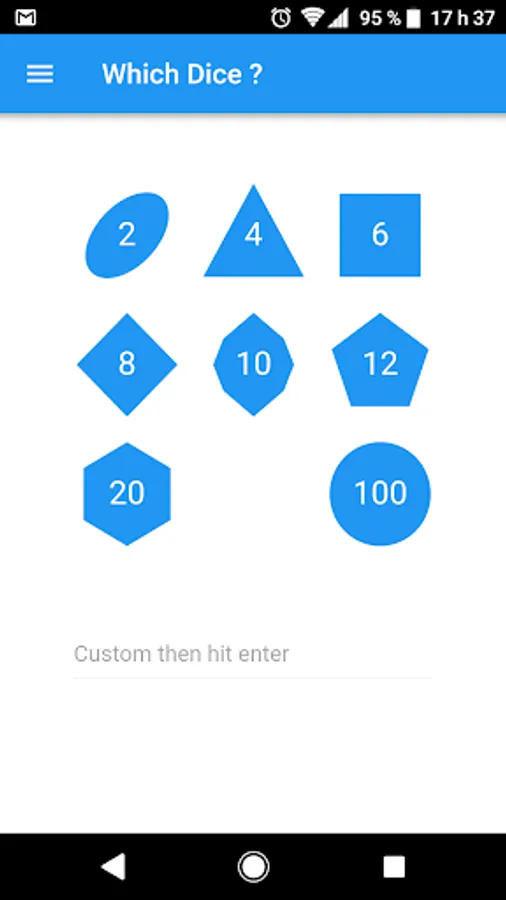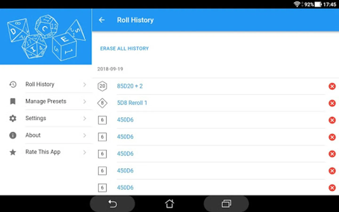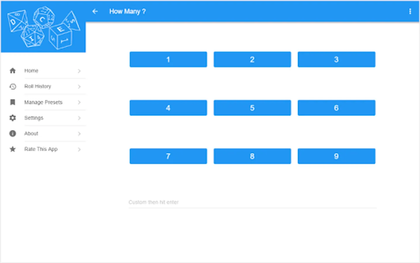 All the most common D&D dices at the touch of a button. This app is made to be as lightweight as possible while allowing any kind of random number generation and common Pen & Paper dice throwing options.