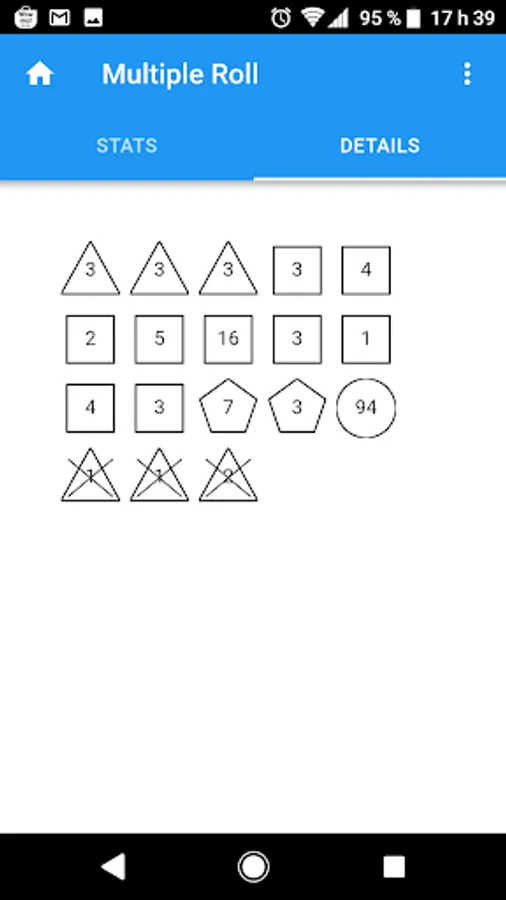 Result page displays all your dice throws but also feature many pre-calculated results.