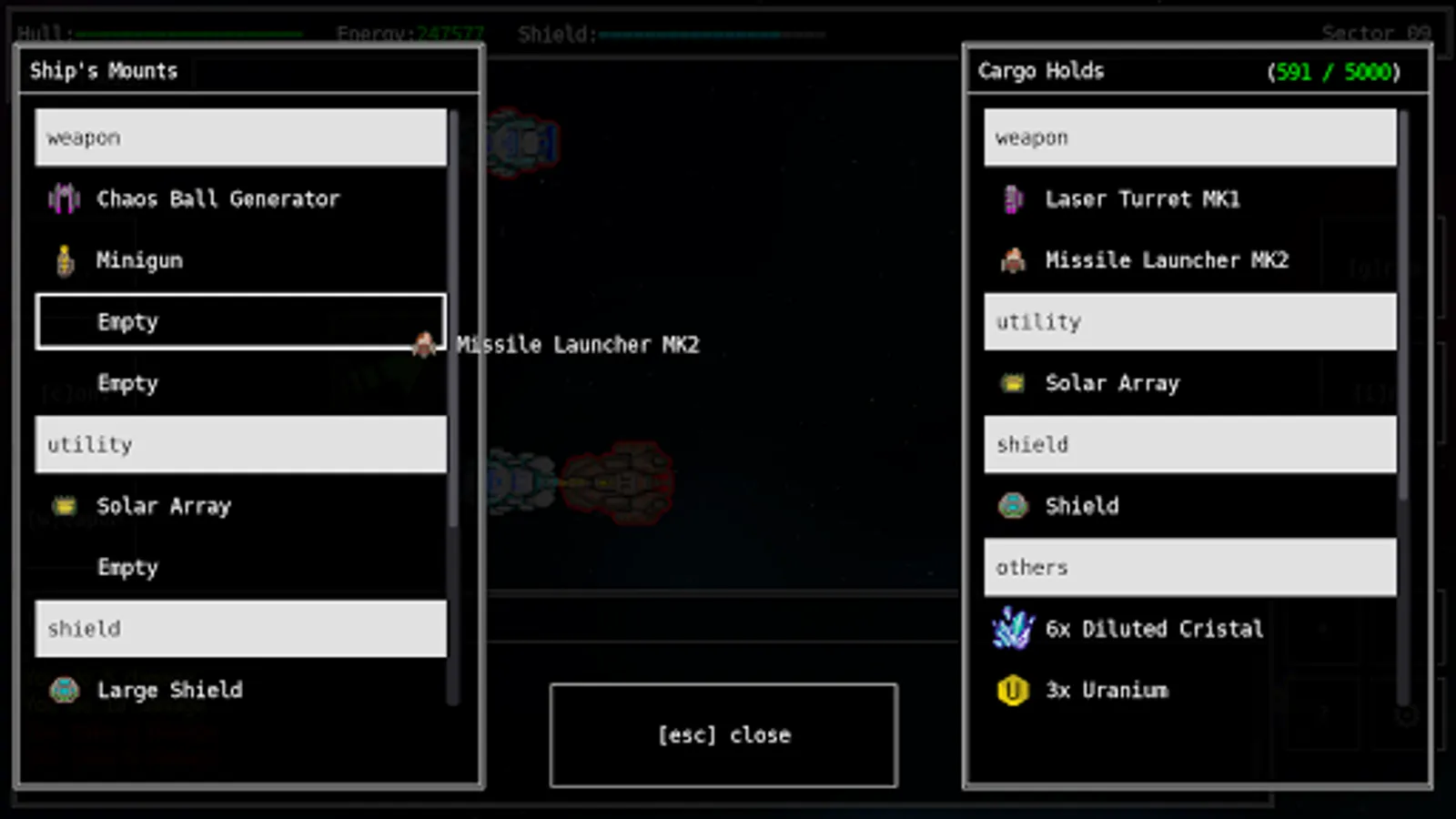 • hundreds of weapons and items to customize your ship and build powerful synergies