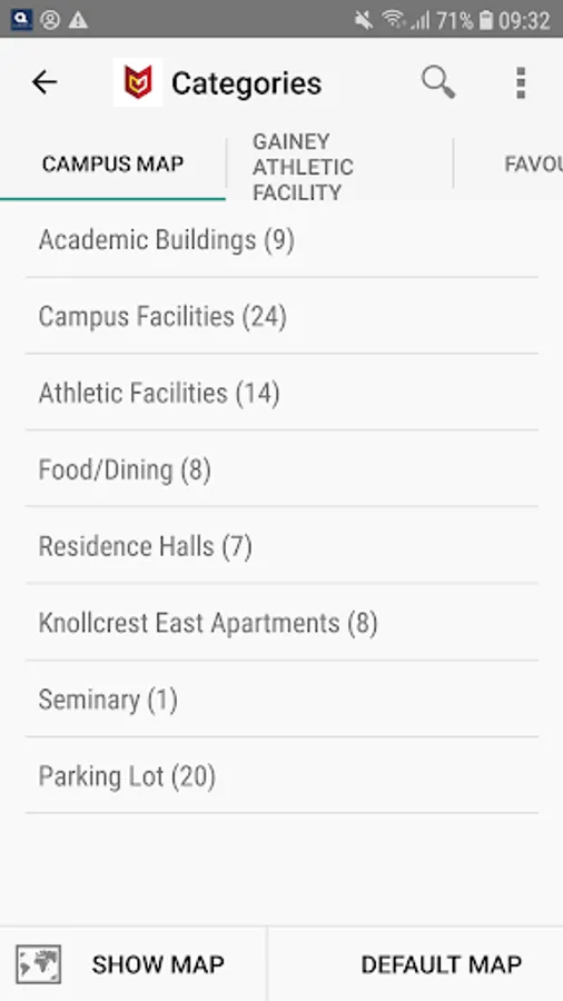 Features a calendar, notifications, campus map, resources list, and other useful links and informational pages. .