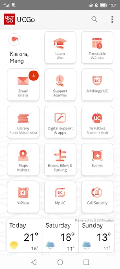 UCGo provides personalised information to the UC community. Access your student email, timetable, LEARN and library account. Use UCGo to find your way on campus, see what classes are on at the RecCentre and receive important information and messages from UC.