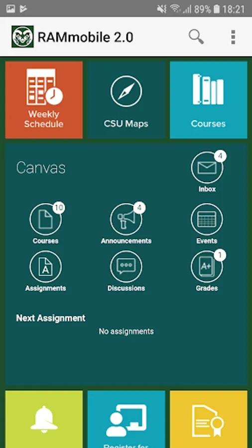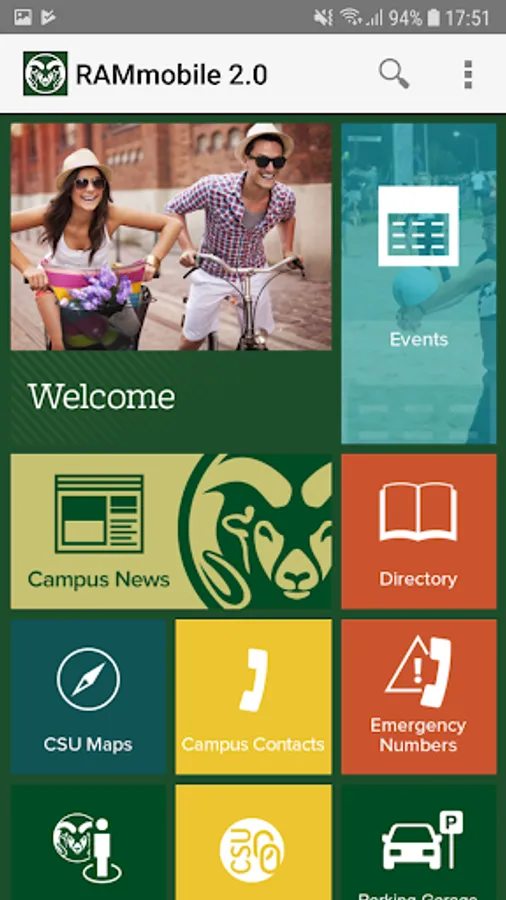 RAMmobile, the mobile app for Colorado State University, offers access to key student information and CSU news anywhere, anytime. RAMmobile includes Grades, Courses, Notifications, Directory, Campus Contacts, Maps, Campus News and Events and resources from the library – with more to come! And it’s free!