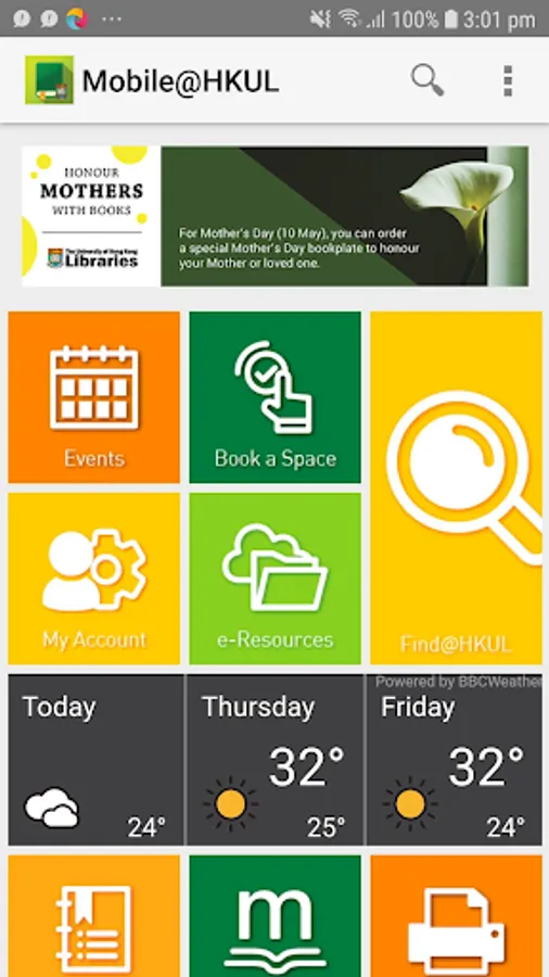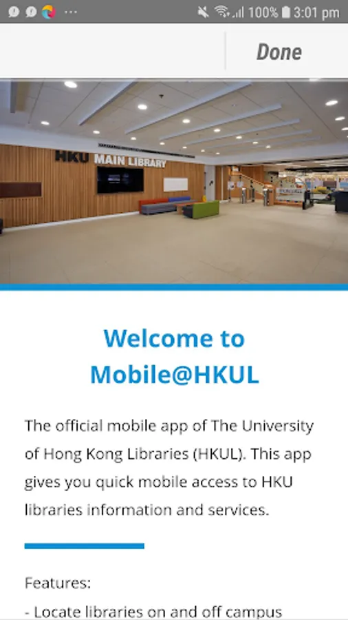 Welcome to the official mobile app of The University of Hong Kong Libraries (HKUL). This app gives you quick mobile access to HKU libraries information and services.