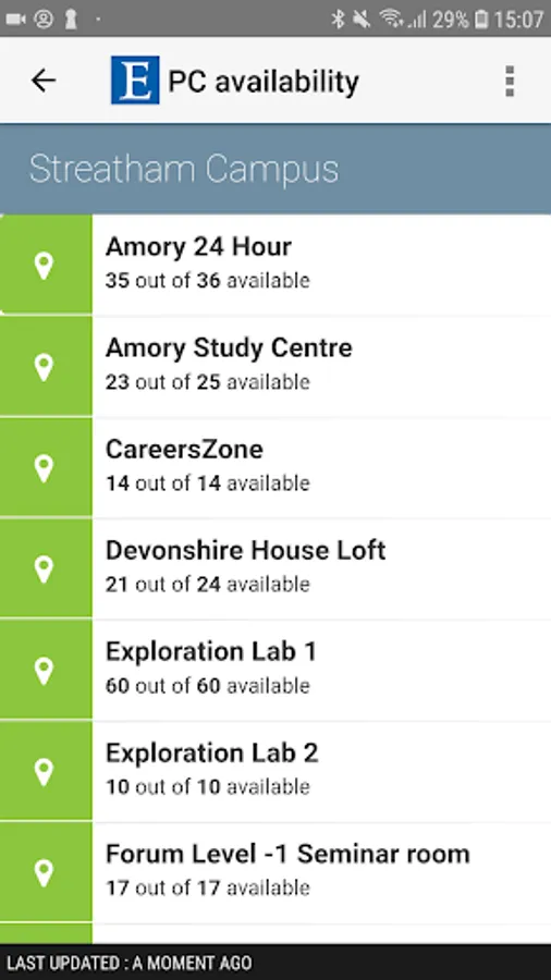 • Find out which rooms have free PC’s and study space