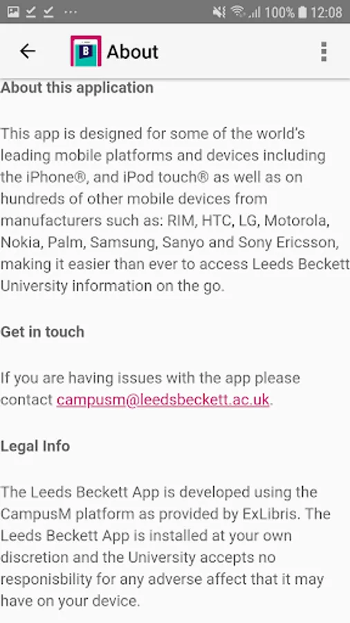 Welcome to Leeds Beckett University and the official mobile service that gives our students access to comprehensive information provided by the University, helping them make the most of the University and their academic studies.