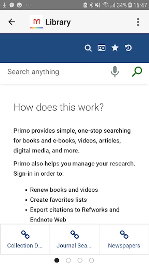 Enjoy library services on the go! Search for content, access your library account, view open hours, read information guides and much more. The Library Mobile app helps students to stay up-to-date with library services, guides, events and more.