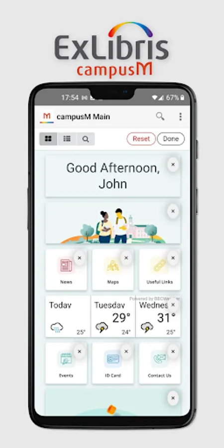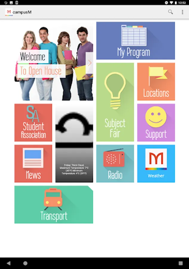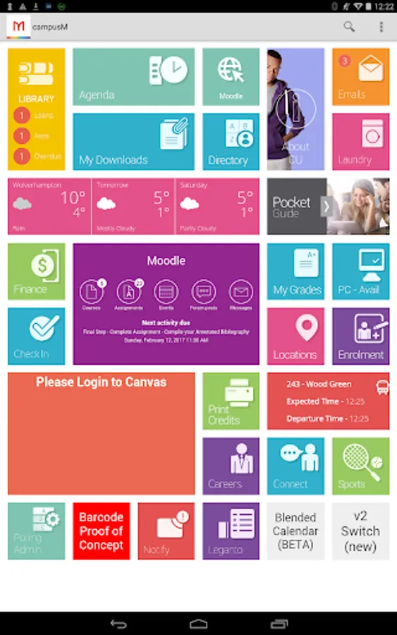 ● Integration with administration services such as email, campus maps, PC availability and transport schedules