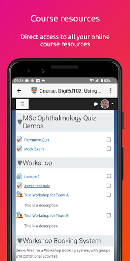 • Learning environment access for course and module information