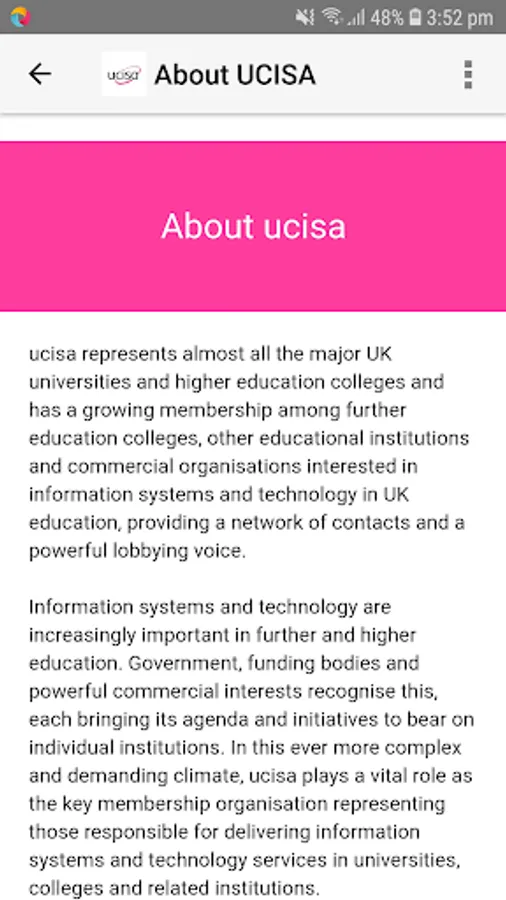 This app gives you a flavour of what does ucisa as well as providing you with details upcoming ucisa events you may be booked on to.