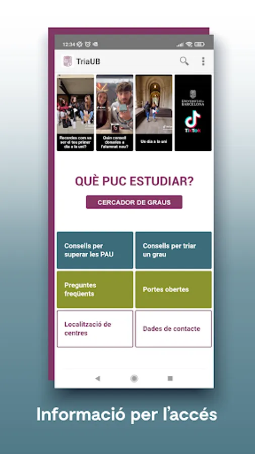 L’aplicació Tria UB t’ajuda en tot el que necessites per decidir quin grau vols fer i com pots accedir a la Universitat de Barcelona.