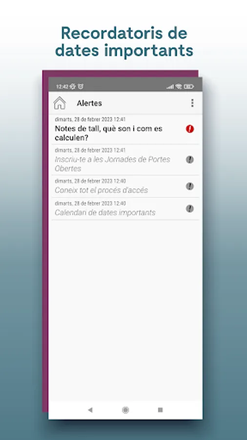 • Recordatoris i notificacions amb les dates més importants durant el procés d’admissió.