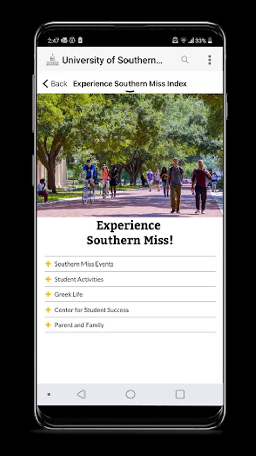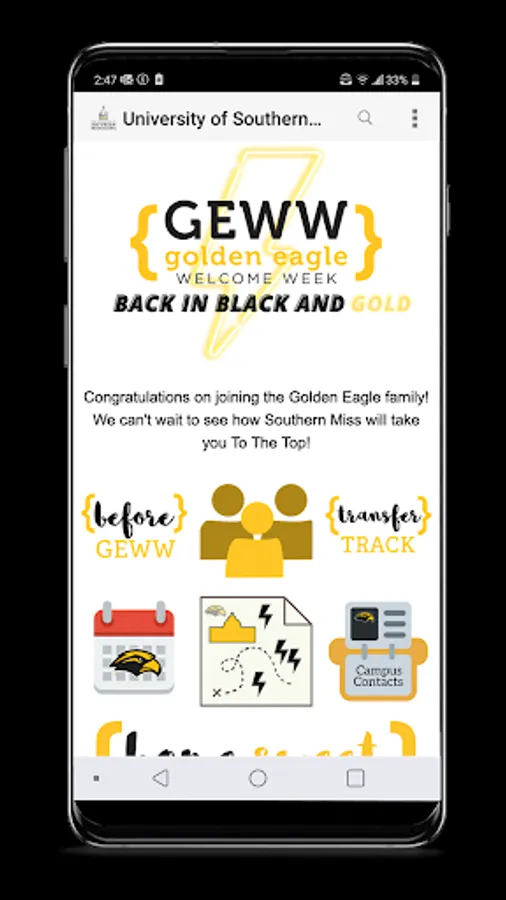 iSouthernMS, the official mobile application for The University of Southern Mississippi, allows you to stay connected to all things Southern Miss anytime and anywhere. iSouthernMS offers resources to support students academically and in many aspects of Southern Miss life.