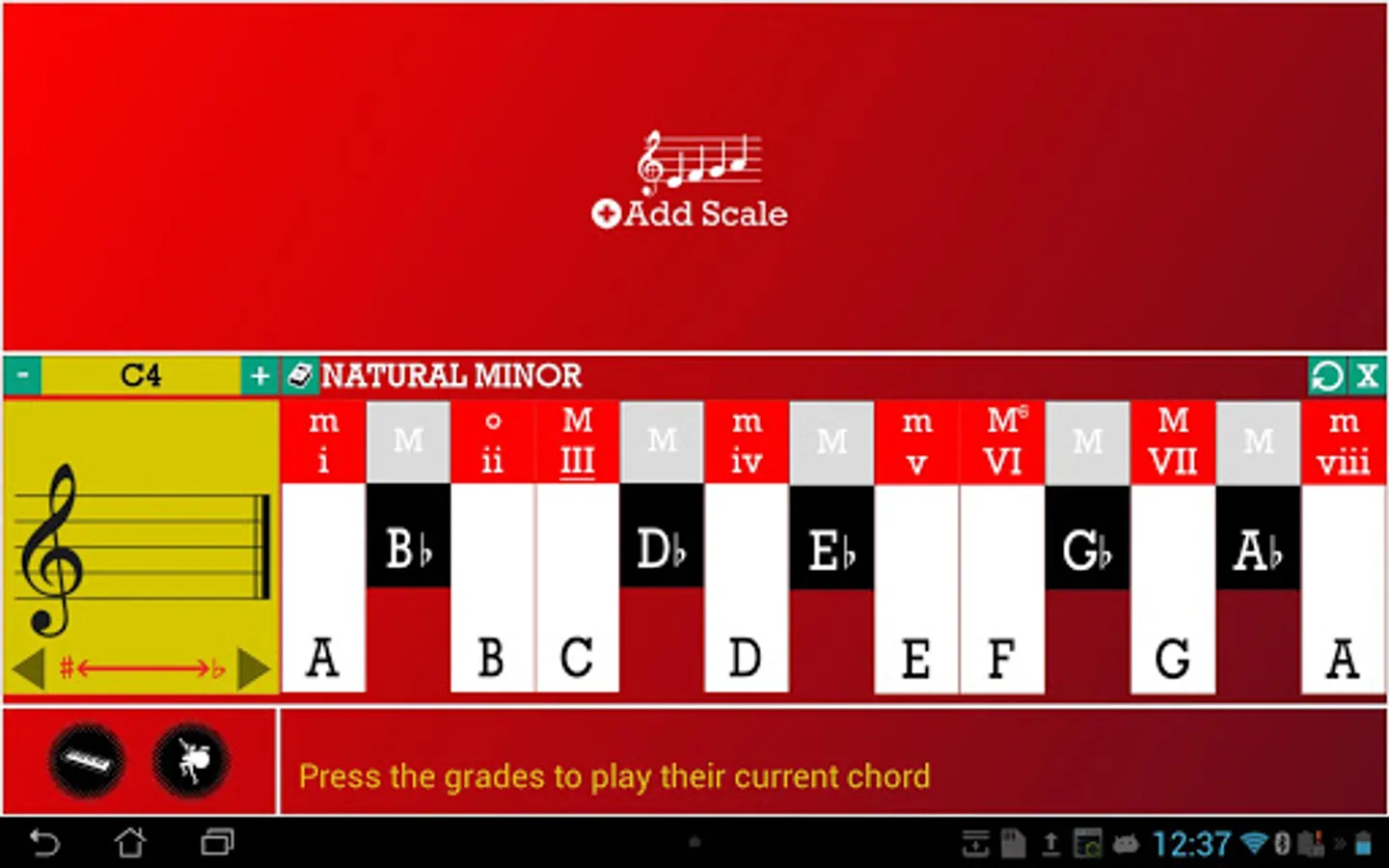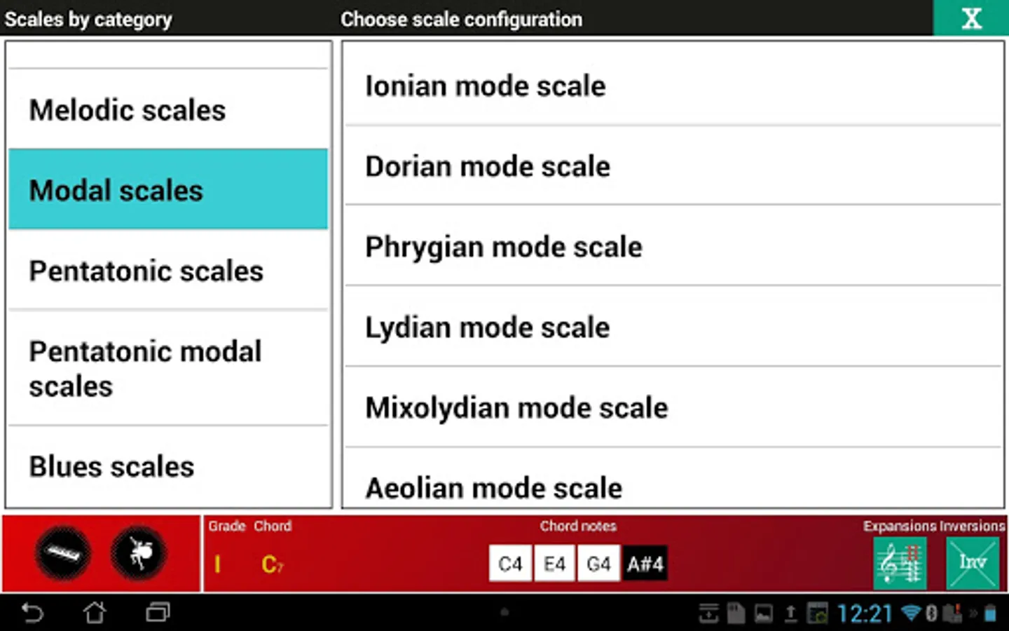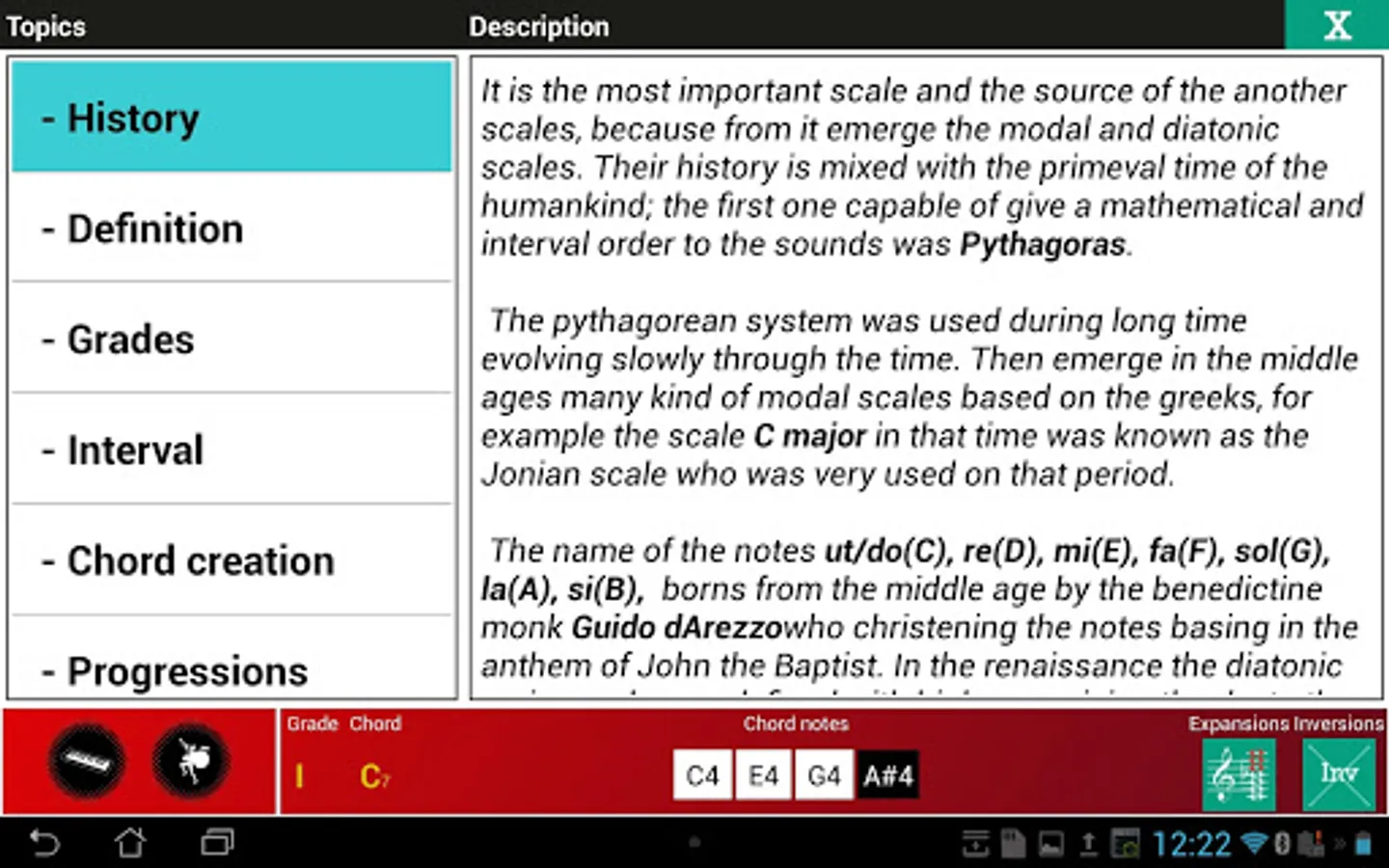BComposer Scales Pro is a complete version without advertising and full features access: Scales, inversions, lessons, chords expansions and more.