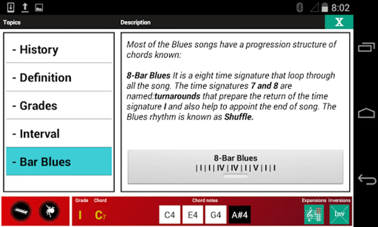 ✓ The app will train your brain to assimilate and use progressions, scales and melodic and harmonic creation.