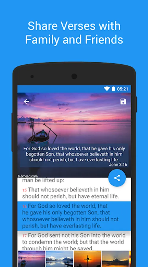 ★ Sharing; sharing verses is simple and beautiful. You can add multiple verses to a beautiful image and share with family and friends. Or simply copy to your clipboard and send quick text messages.