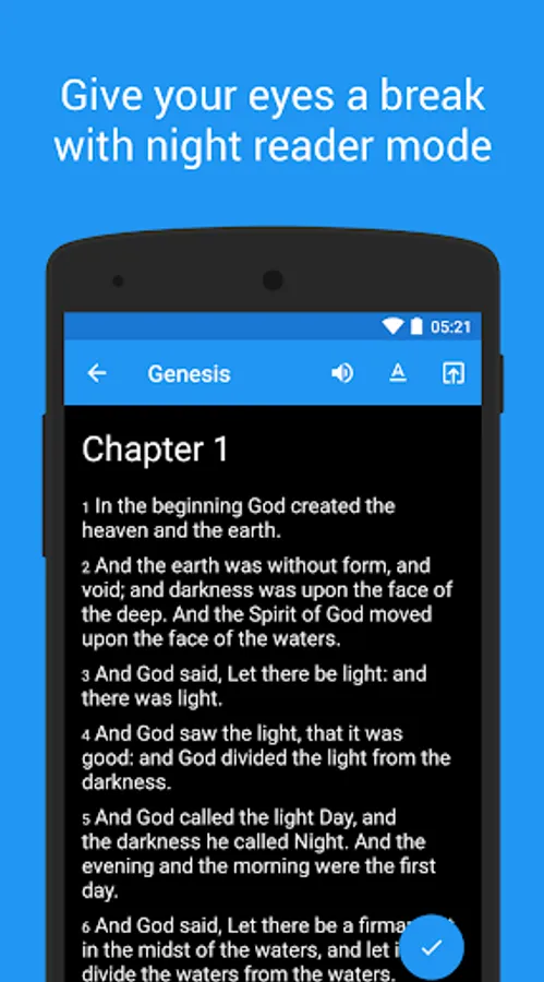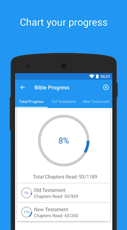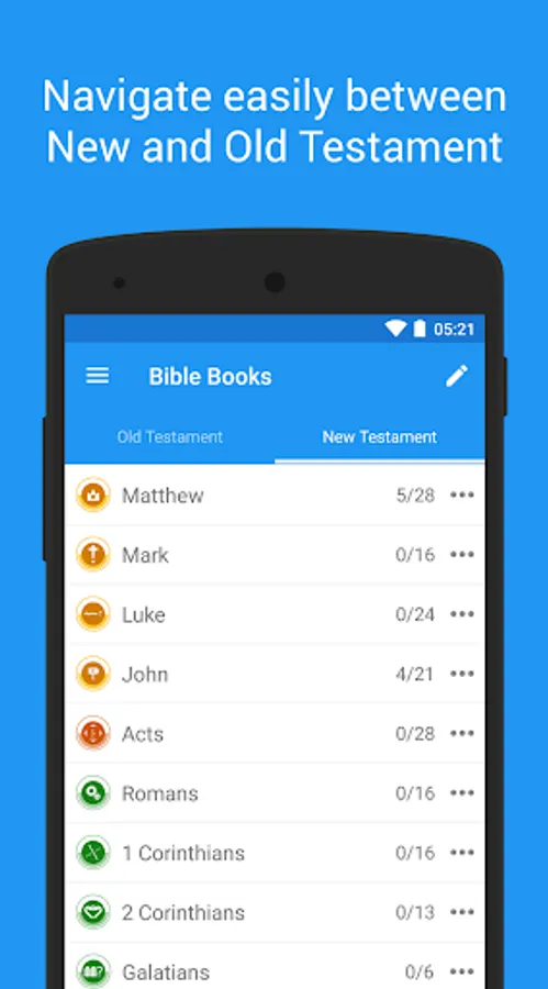 ★ Bible Progress; mark chapters complete and keep track of your reading progress. There are breakdowns for the Old testament, New Testament, and individual chapters.