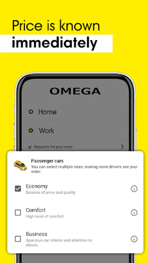 Omega: taxi service is an app for every day, that allows you to save time, money and energy for really important things.