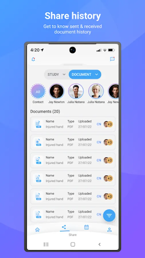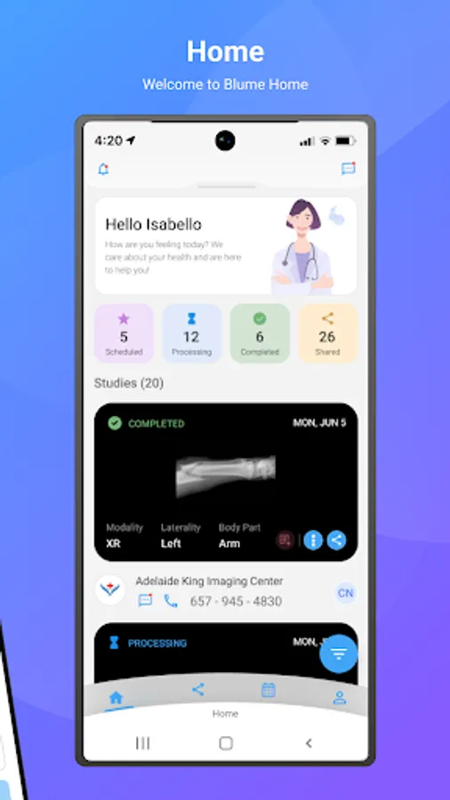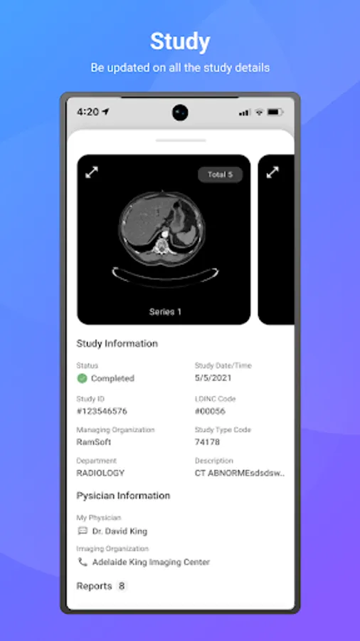 Keep track of all completed, scheduled, in progress, and cancelled studies as well as use automated filters to organize your content. Access information about the study, physicians involved, contacts the study has been shared with, study images, and study reports.
