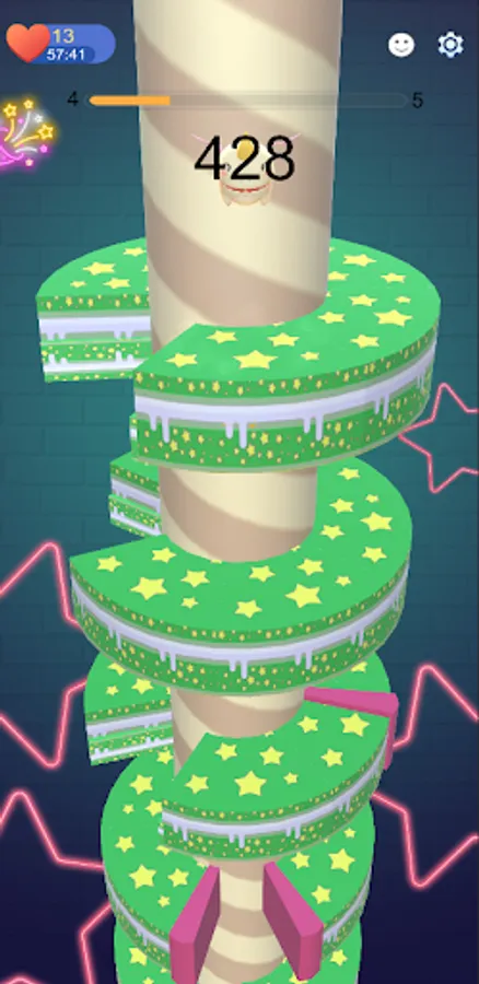 Cake Helix Hero is a casual game that will captivate you with its simple yet addictive mechanics. Tap and hold to control the dragon's movement as it bounces up and down the helix tower. Aim for the gaps between the cake slices and strategically time your moves to avoid the tempting traps lurking along the way. With each successful descent, you'll progress to new levels, encountering even more challenging obstacles.