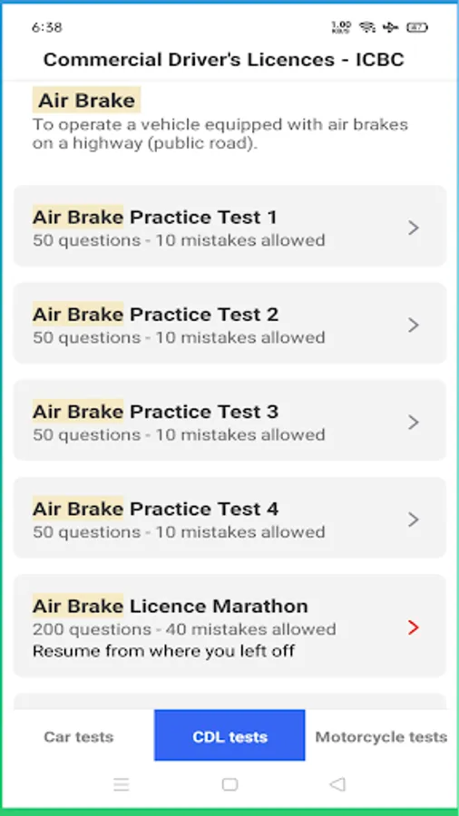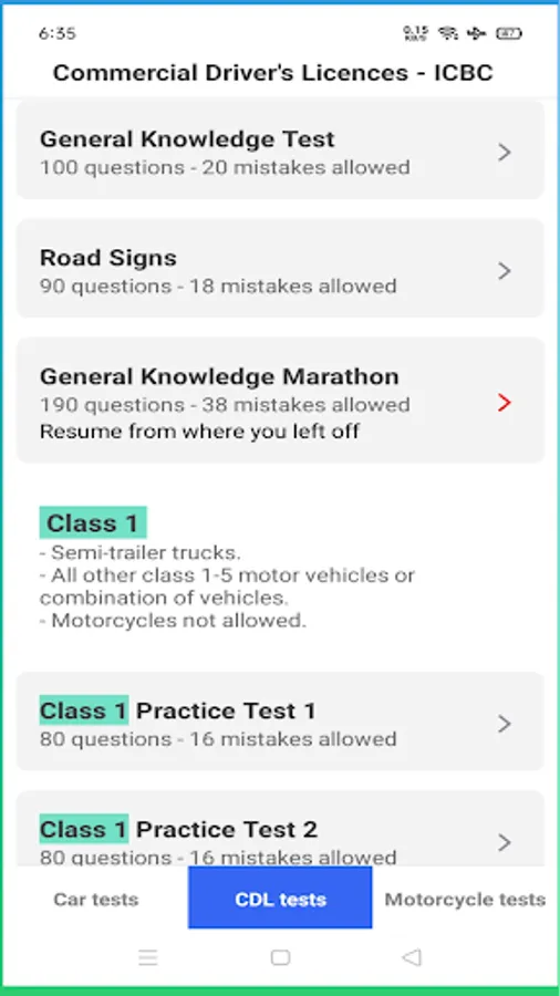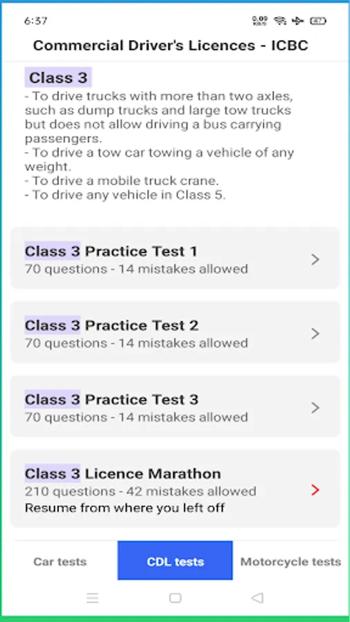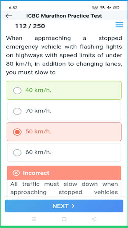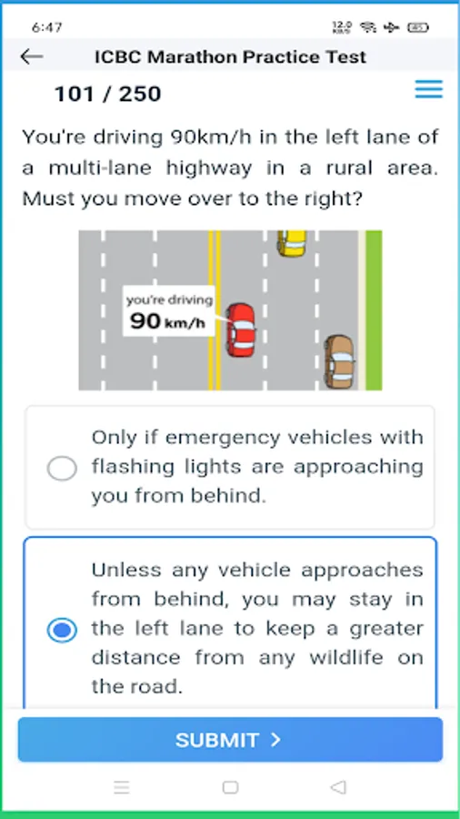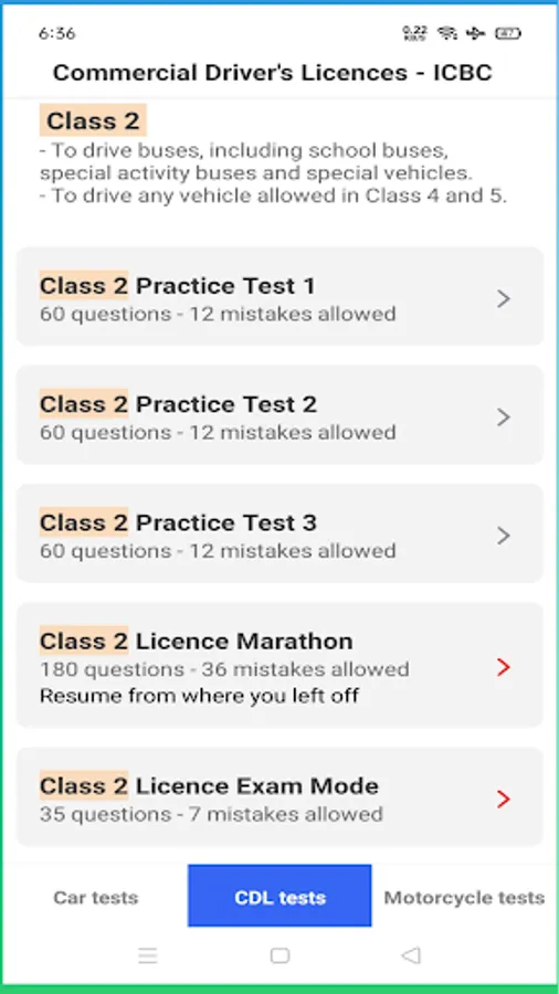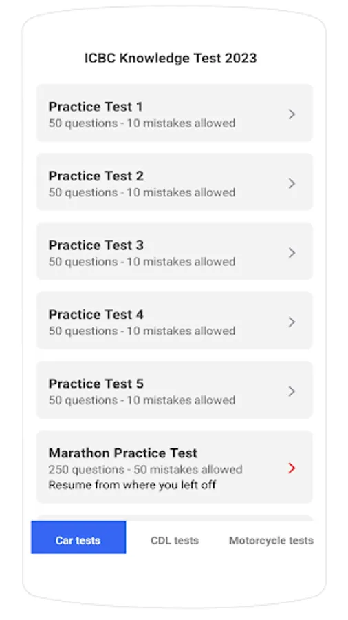- New questions every time: random questions and answers every time you restart an ICBC Practice Knowledge Test.
