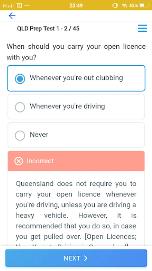 Each practice test question is based on the current Queensland driving rules and the official 2023.