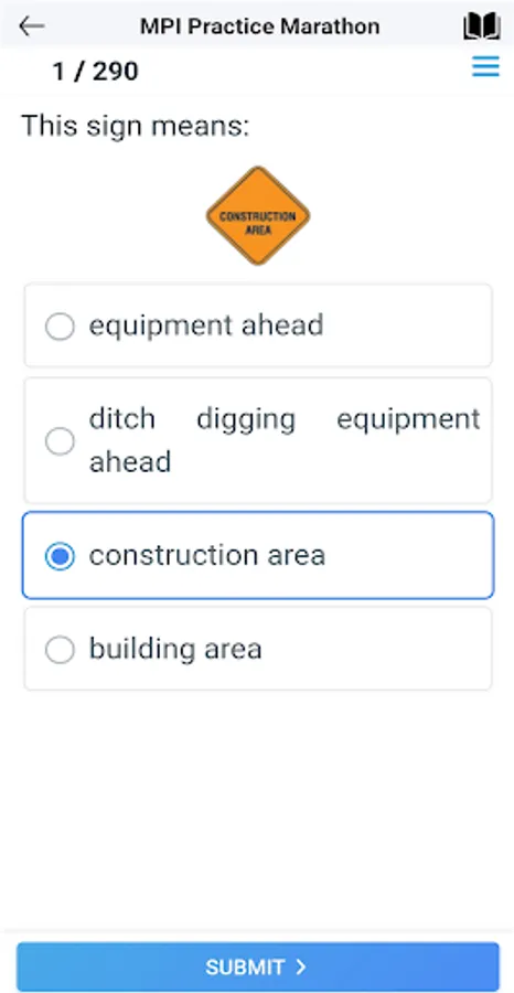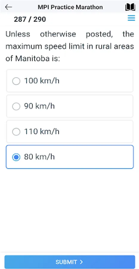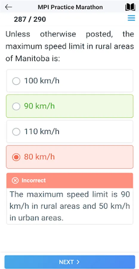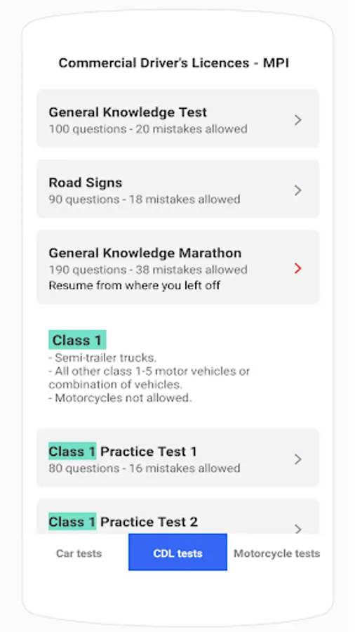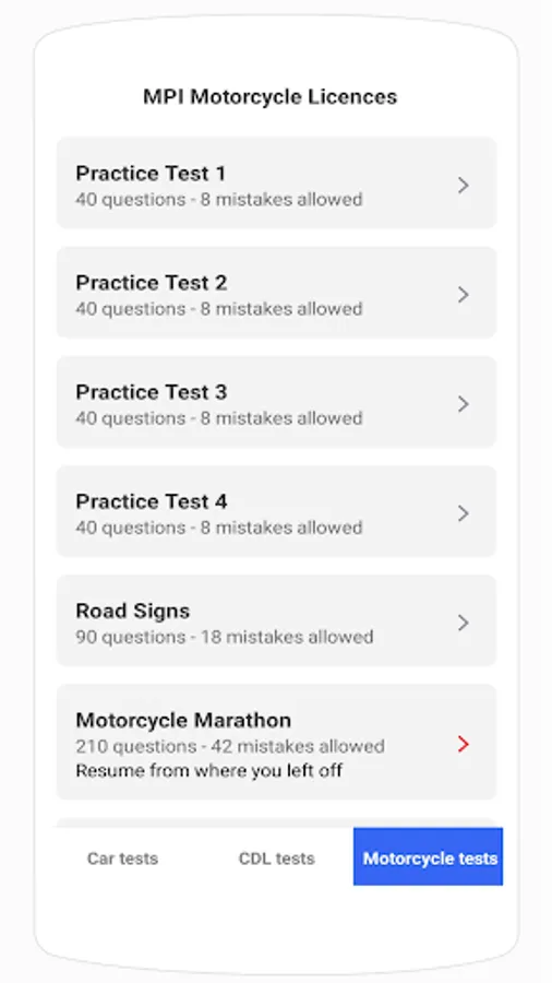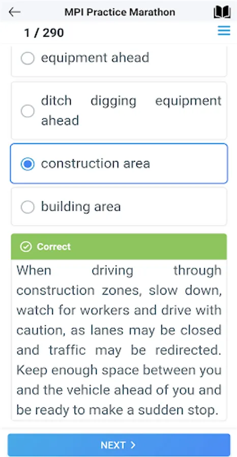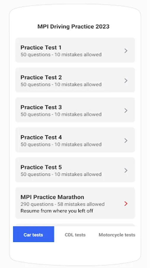 - New questions every time: random questions and answers every time you restart an MPI Driving Quiz.