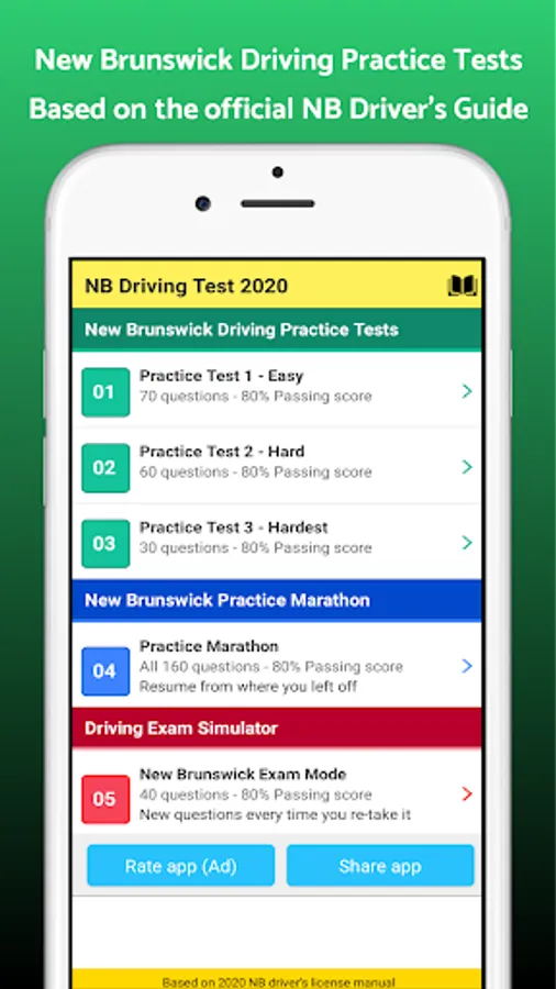 - The practice test contains 40 multiple-choice questions randomly chosen from a database of 160 questions that will help you to pass the NB drivers test Easily.