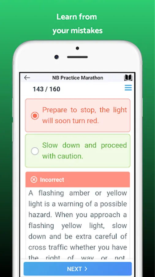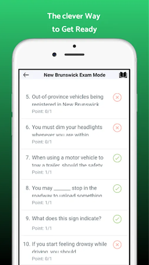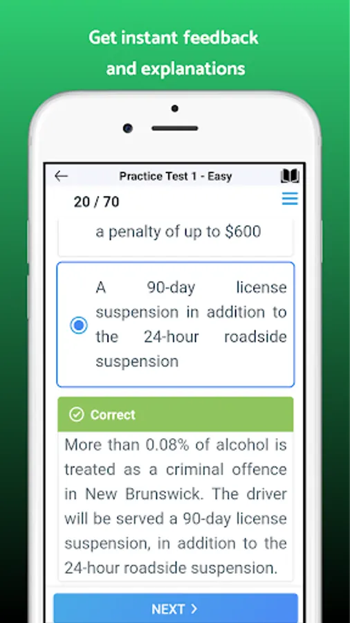 - New questions every time: random questions and answers every time you restart an NB driver's test.