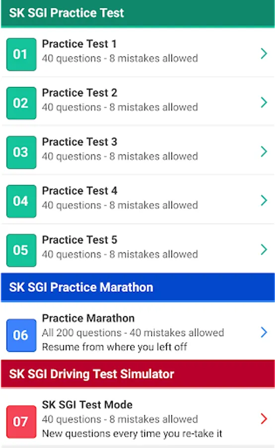 - New questions every time: random questions and answers every time you restart a Saskatchewan SGI Driving Test.